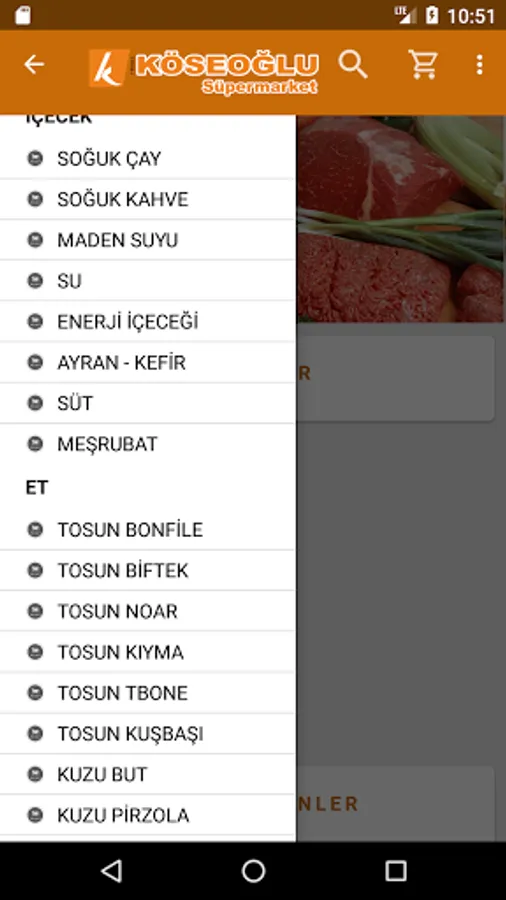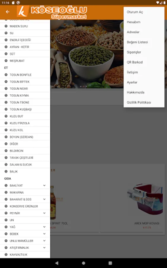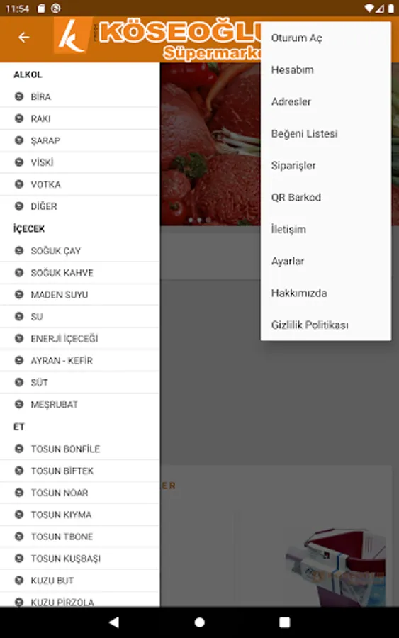 Kösoğlu Market Mobile Shopping Web Application is a retailing application of Köseoğlu Supermarket, which is available on iOS Android and the web and continues its activities in Northern Cyprus. With the application, the store provides its customers the opportunity to shop online via mobile devices.