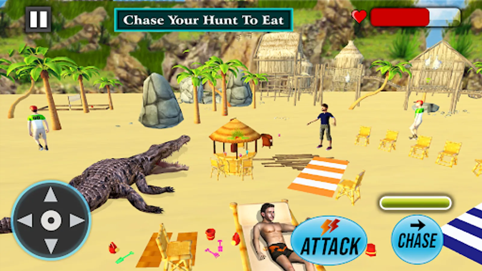 There are different challenges and stages of this hungry crocodile simulator attack gameplay. Start your first mode either beach attacking or jungle animal attacking. Learn the objective of each level and initiate to target humans, fish and wild lives. Crocodile is hungry and you have to quench its thirst by eating several lives from outside water. Eat fishes also like whale, shark and other sea animals. Target with big jaws on frantic prey to eat your favorite food. Some people disturb small crocodile, now your mission is to hunt them and save your family specie. Creep slowly and capture your meal rapidly to accomplish the challenges. People will run when they see crocodile but your task is to chase and get them. Perform your best to show your hunting capabilities to kill and eat different things. All levels of this wild crocodile beach 2018 game are exciting and unique. Probably you have played many hunting animals game but this crocodile simulator attack hunt experience is somehow addictive for users due to multiple option in crocodile selections and mode selection. Be finest attacker and don’t get your food away in this crocodile attack game: real hunt adventure.