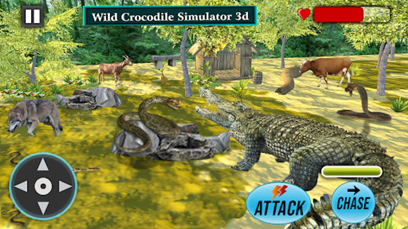 Start the thrilling adventure in hunting category as crocodile attack free: wild 3d game in which you have to experience to eat animals, humans and fish to quench the crocodile appetite. Perform different operations like swimming, slithering, crawling and attacking to get meal from beach, jungle and within water. Accomplish tasks like emerge from water suddenly to capture your prey. Crawl on to the jungle bank water environment and beach side to explore and get next meal. Put the jaws of crocodile on human people and animals like deer, cow, goat, wolf, pig, tiger, lion, zebras and also aquatic life such as fish & sea animals. Interesting and thrilling 2 modes in hungry crocodile: real attack free game will make the user addictive. Realistic hunting animations and climate will additional attractiveness of this crocodile games wild attack adventure.