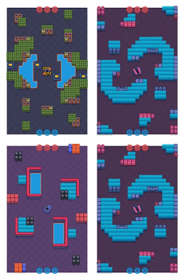 List of all maps sorted by game modes. Click on a map to check its last data for best and all brawlers.