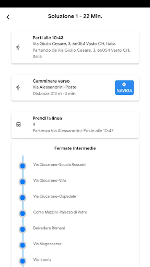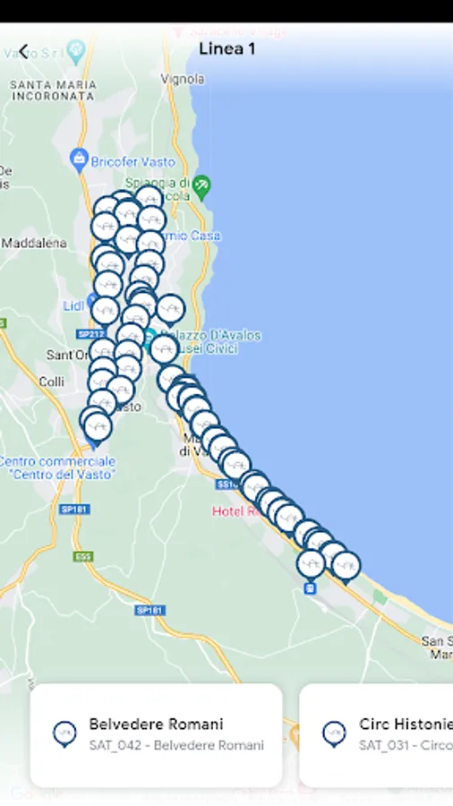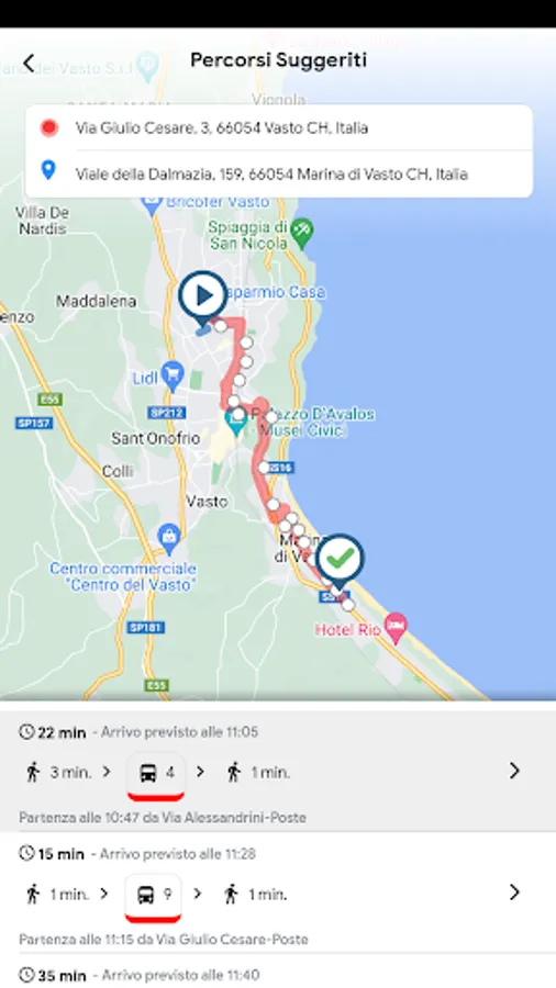 Choose your starting point, and the SAT Vasto app will offer you the routes to choose to reach your destination.
