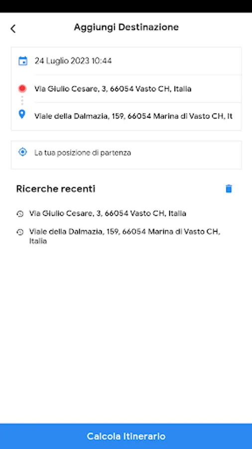You can also "Choose a destination": you just have to click on the appropriate bar and enter your destination, and finally click on "Calculate Itinerary". The SAT Vasto app will offer you various detailed "Suggested Routes" solutions to reach your destination!