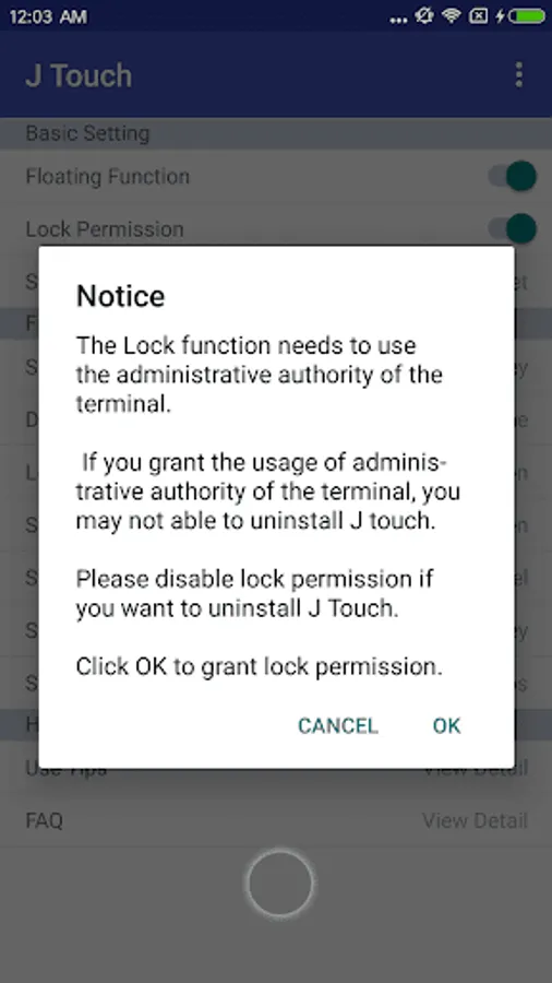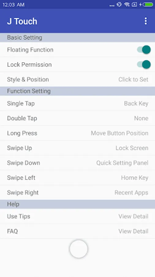 2. J Touch uses Accessibility Service to simulate Back Key/Home Key/Recent App Key etc for better usage of phones with big screen size.