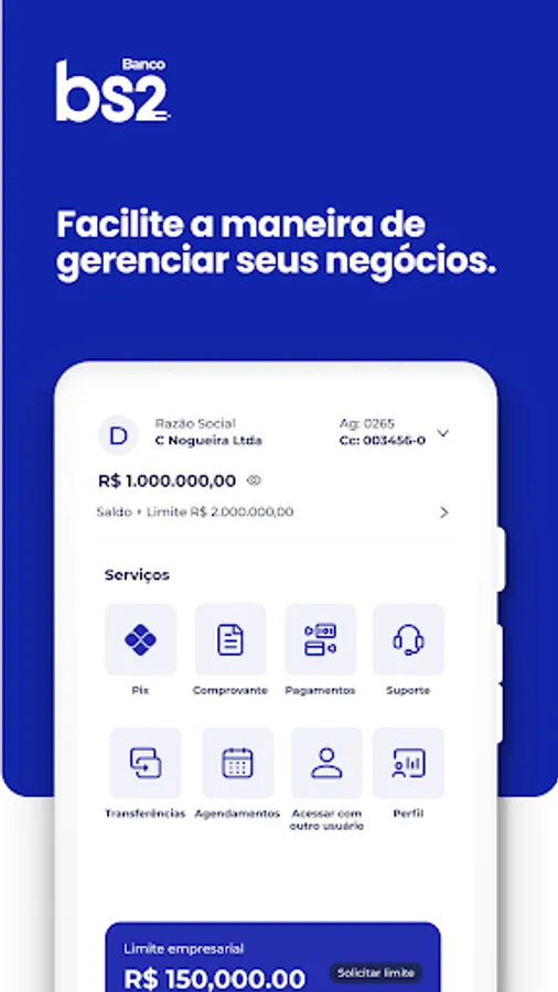 BS2 has been in the market for over 26 years, formerly as Banco Bonsucesso, a solid and successful financial institution. So, here you can trust, because your money is in good hands. Download the BS2 Empresas APP and manage your business account!