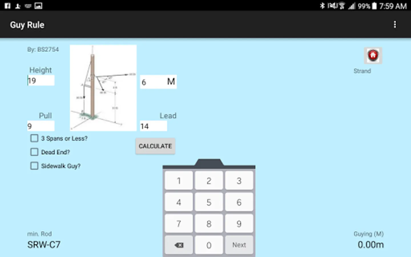 This application was designed for making the right choice when collecting field notes for placing aerial cable and strand. You can quickly estimate guying requirements, strand size, anchor rod sizes, strand weight and over 600 types of communication cable diameter and weight. (no coax cables).