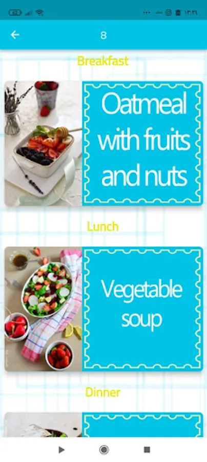 We will give you ideas for 10 days of healthy living for breakfast ideas , lunch and dinner, you can control any meal according to the instructions mentioned in the application, or add snacks consistent with the regime.
