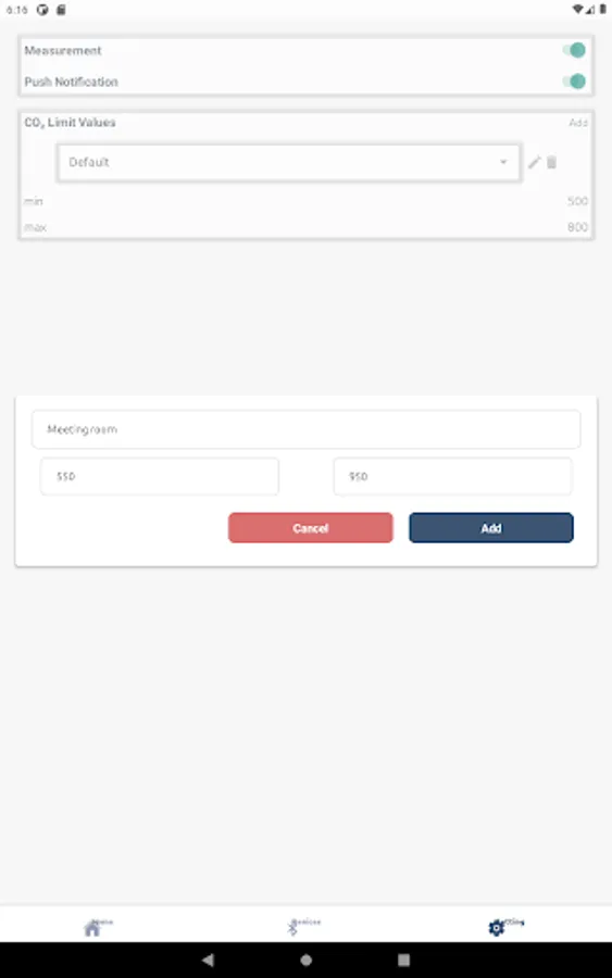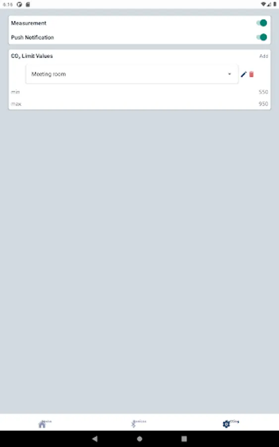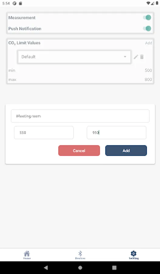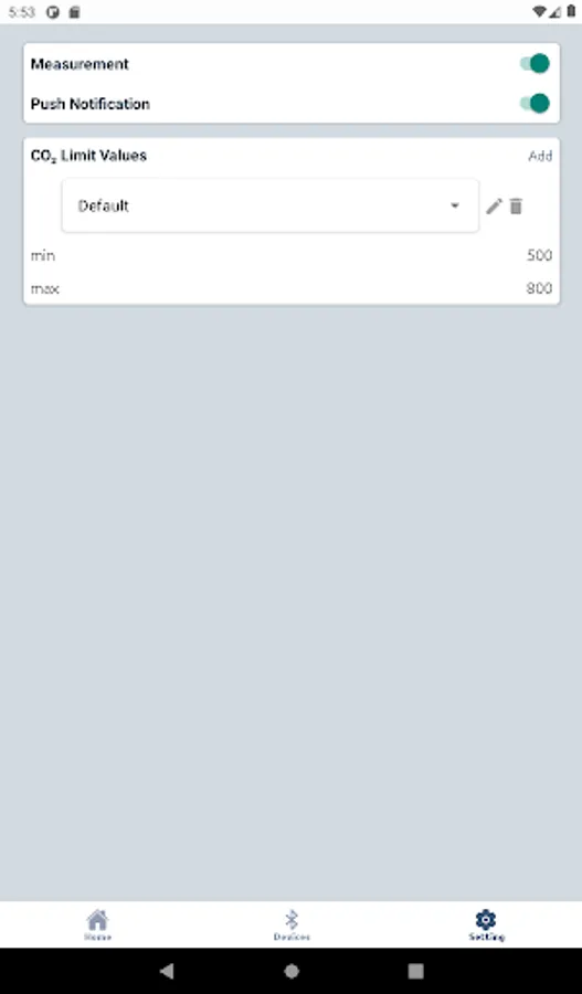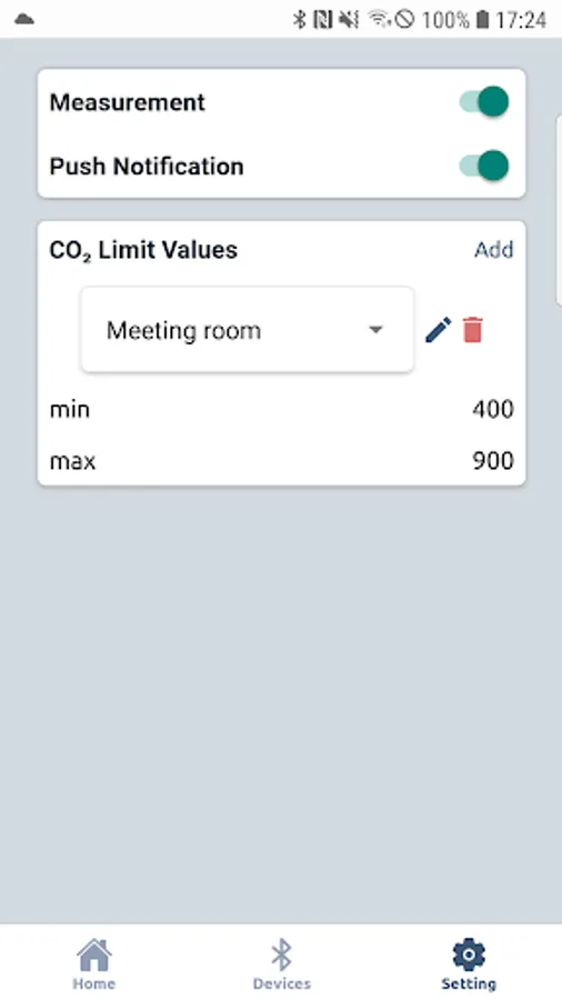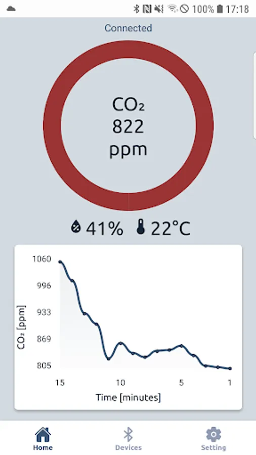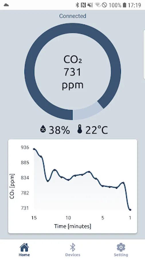 With AirQsSlim app, You can monitor the air quality through the sensor. AirQsSlim communicates with AirQs device via Bluetooth to get the real time values of CO2, temperature and humidity. You can set multiple threshold levels for CO2 and being notified if level exceeds or subceeds.