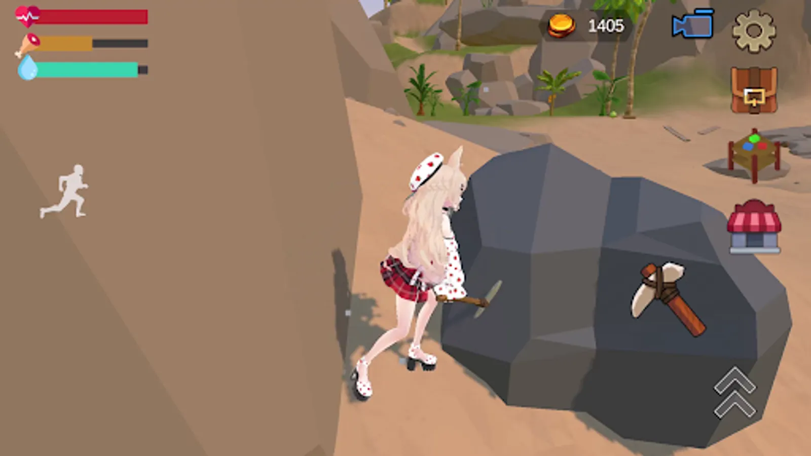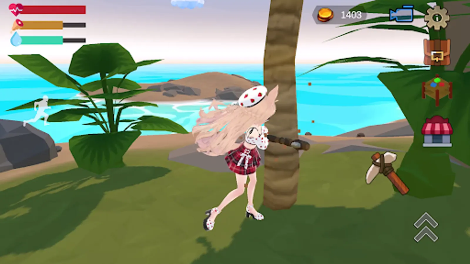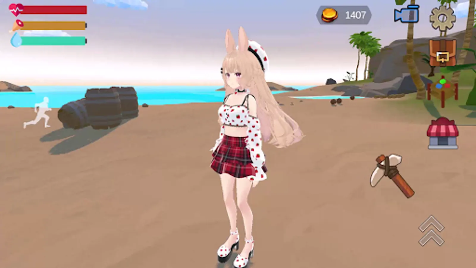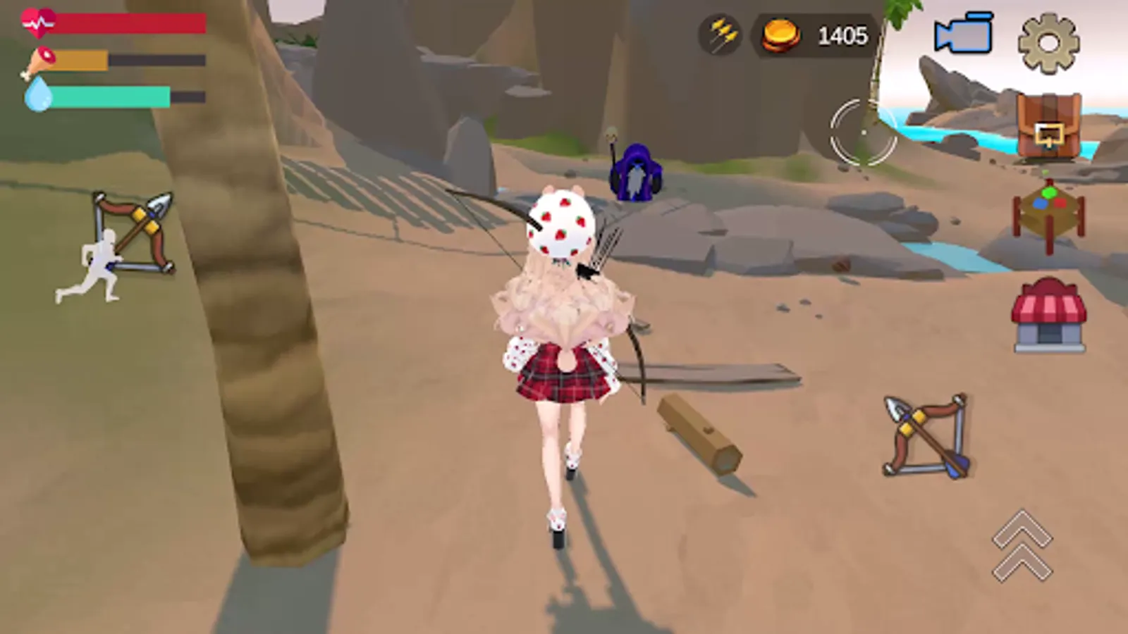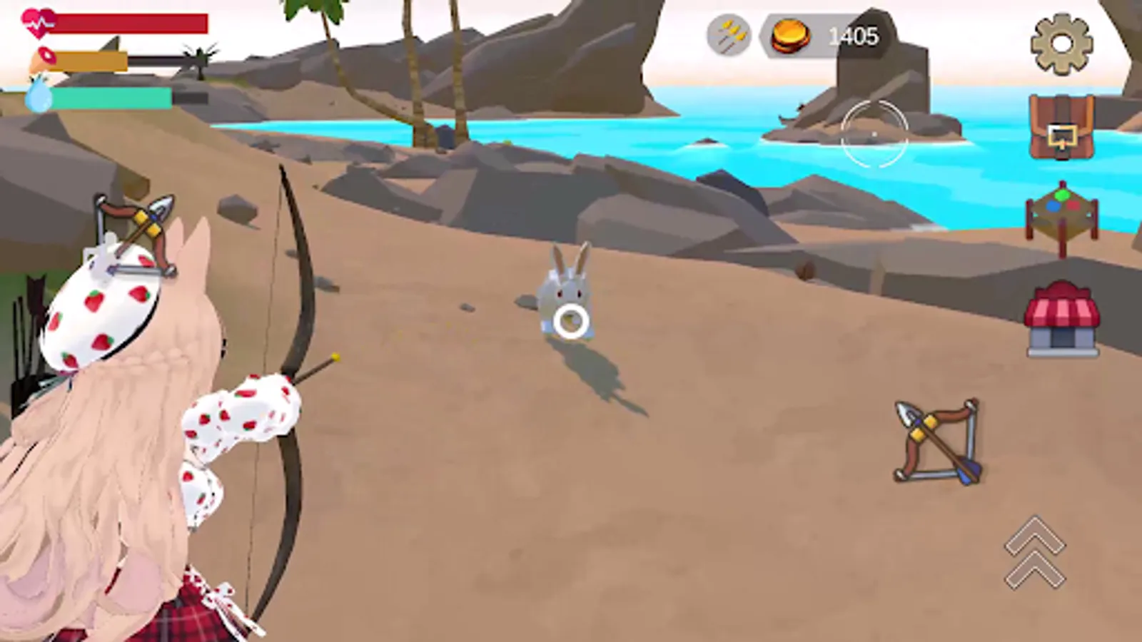 In this game, you play as a anime girl thrown into a lost island filled with enemies.
