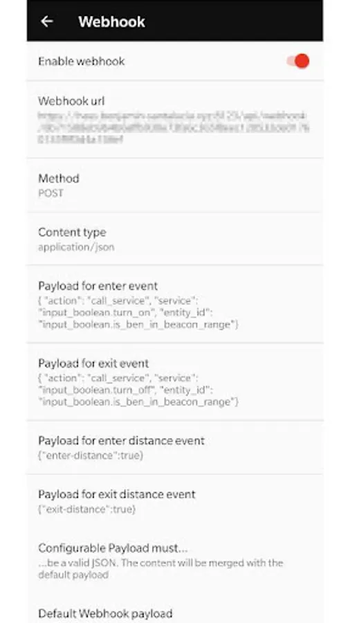 * Webhook Beacon Enter Distance Payload