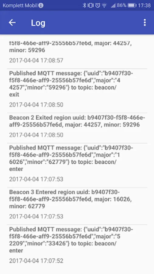 You can then configure an MQTT broker and/or Webhook broker that will be notified each time the beacons enter or exist the range of the phone.