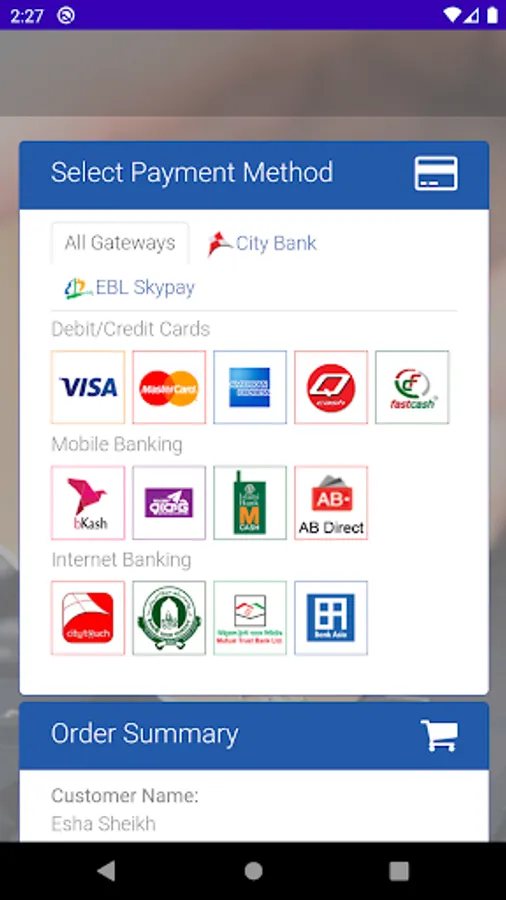 ● Easy Online payment using Card and MFS