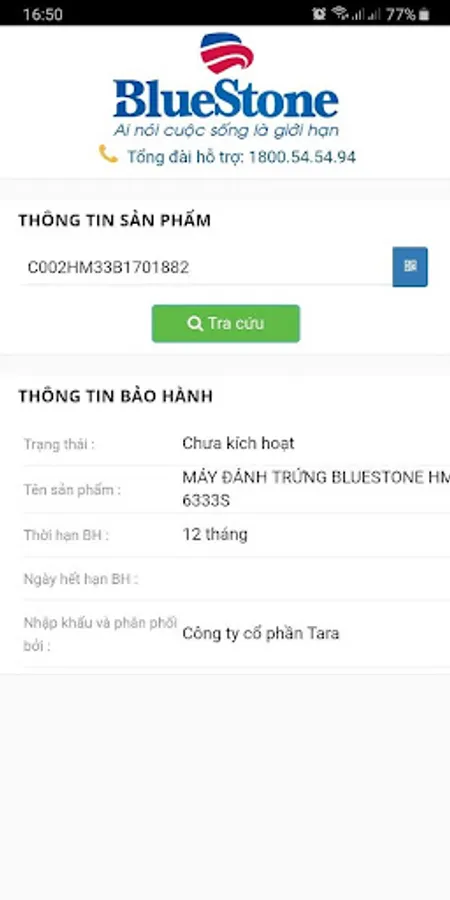 The application supports product information lookup