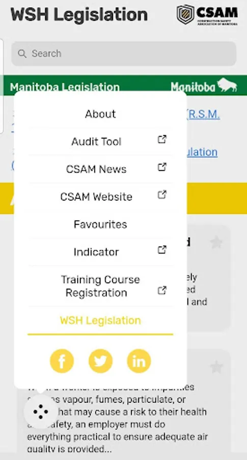 In Manitoba, the Workplace Safety and Health Act and the Workplace Safety and Health Regulation contain legal requirements that must be met by all Manitoba workplaces. Many sections of the legislation have associated guidelines and publications to help workplaces meet these requirements.