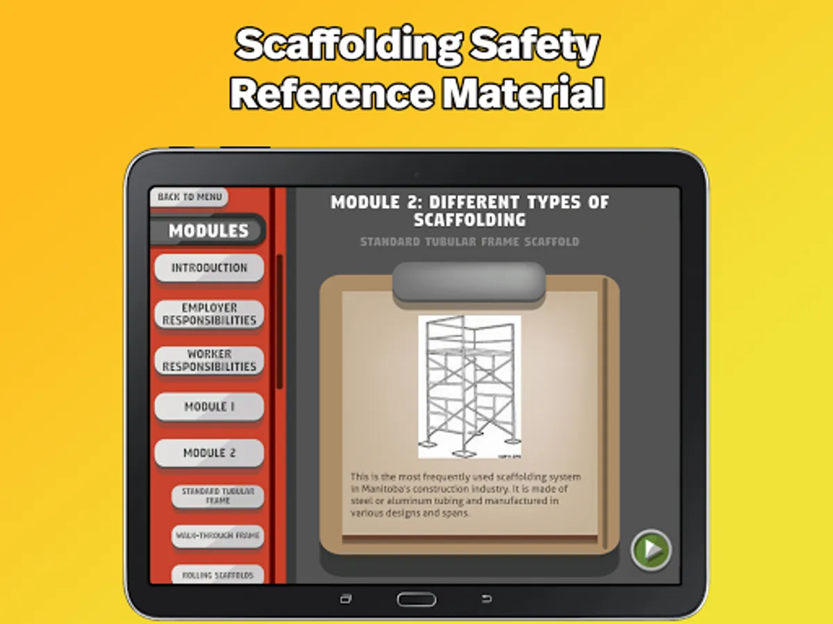 This course covers the basics of scaffold safety and is designed for tradespeople including drywallers, siding and stucco installers, welders, millwrights, painters, power engineers, masons, insulators, ironworkers etc. so they think safety when working on a scaffold. This resource would be an effective teaching tool for use in high schools, Apprenticeship programs or for tool box talks on the job site.