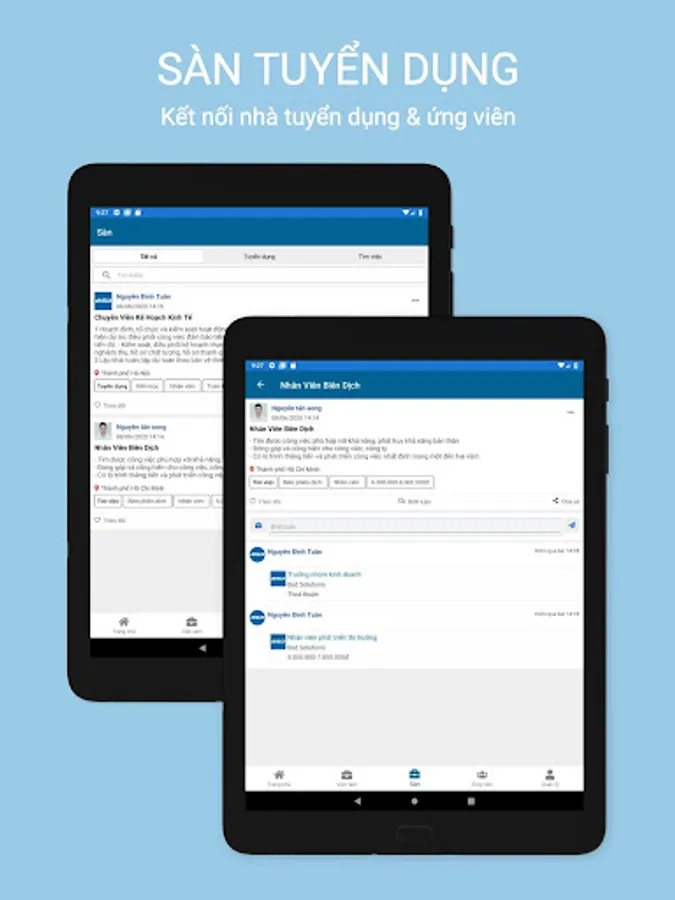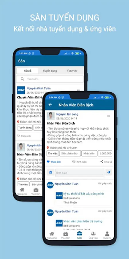 • Easily exchange with each other via comments, chat to achieve effective recruiting goals, find the best job.