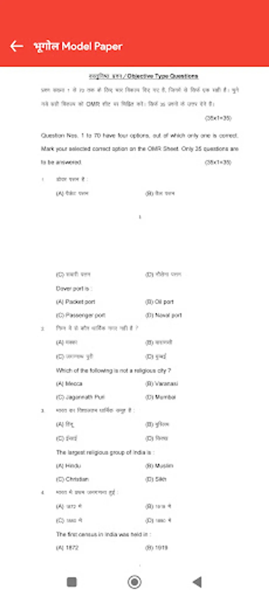 ◉ Geography Model Paper
