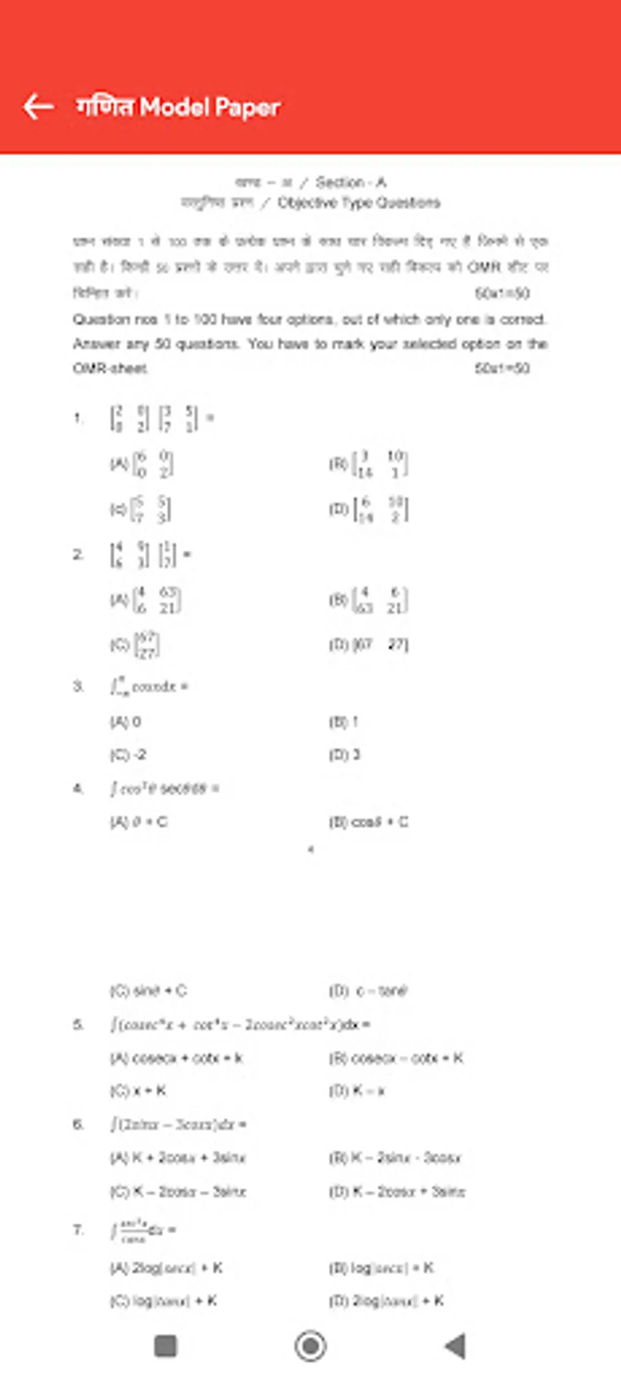 ◉ Hindi Model Paper