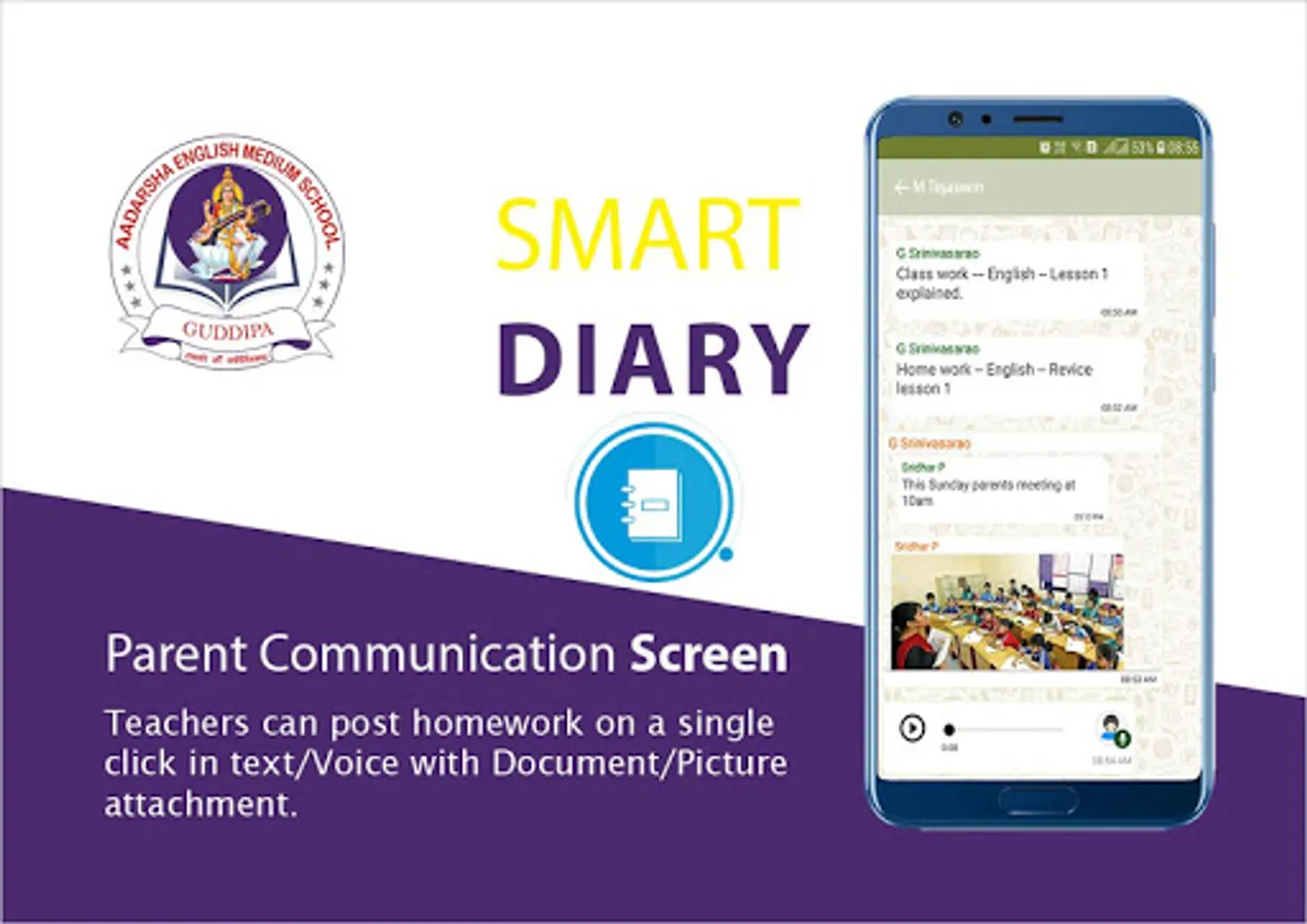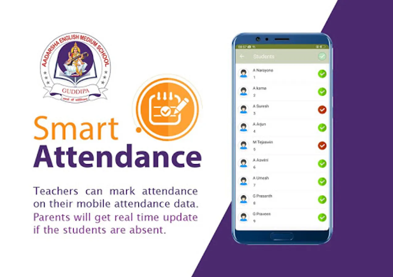 AADARSHA EM U.P SCHOOL app provides an instant communication system for staff, teachers and