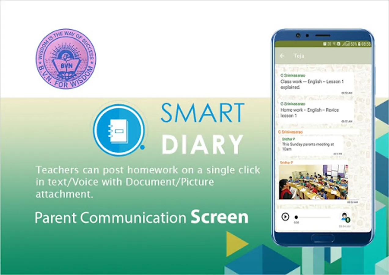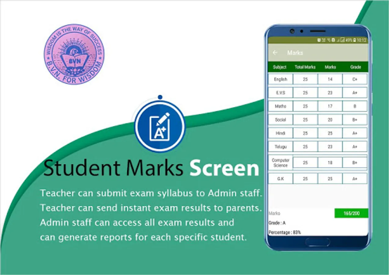 Bhaskar Vidya Nikethan app provides an instant communication system for staff, teachers and parents. It helps the teachers send any kind of information regarding students to their parents instantly with just a click.
