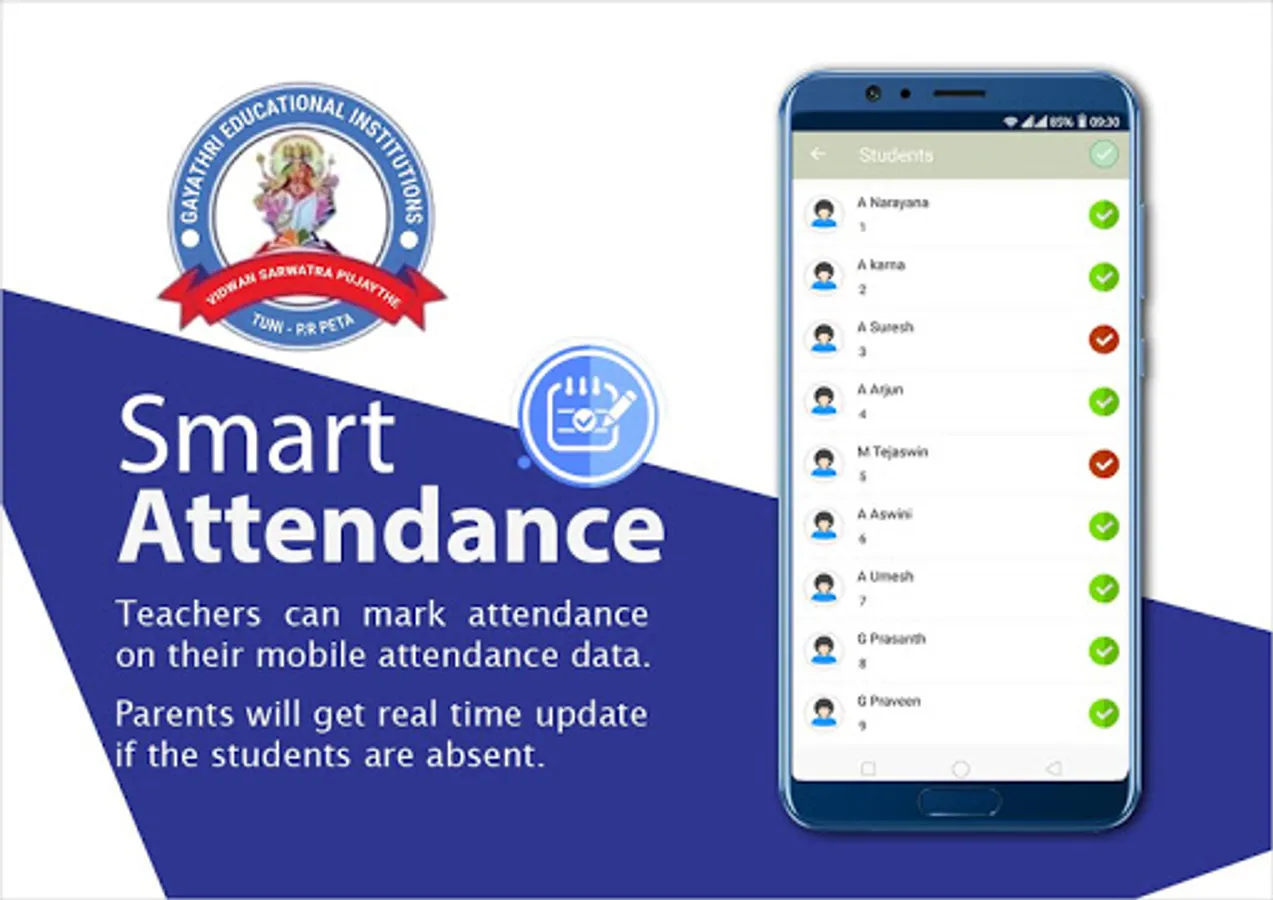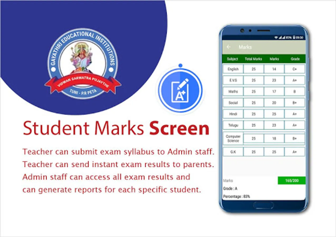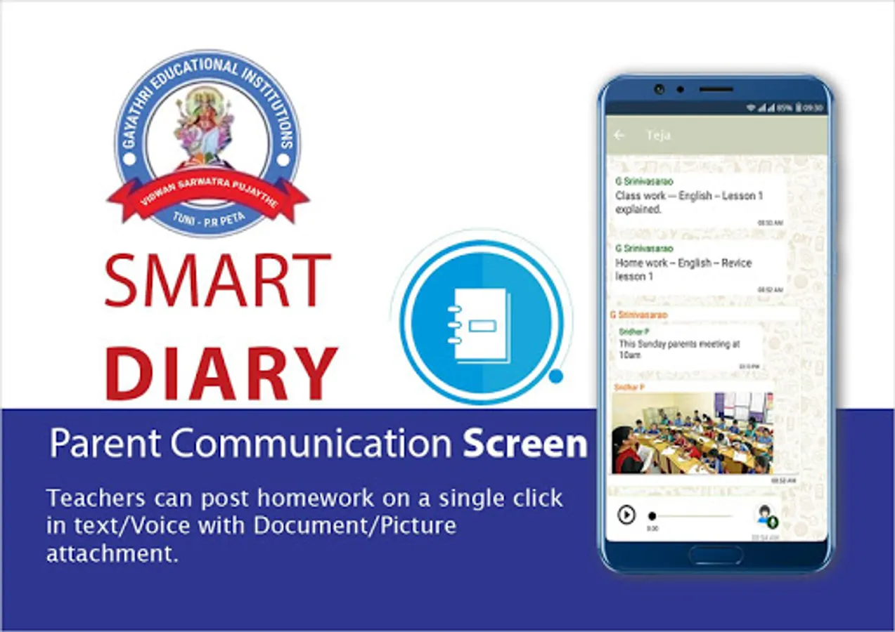 Gayathri English Medium School app provides an instant communication system for staff, teachers and