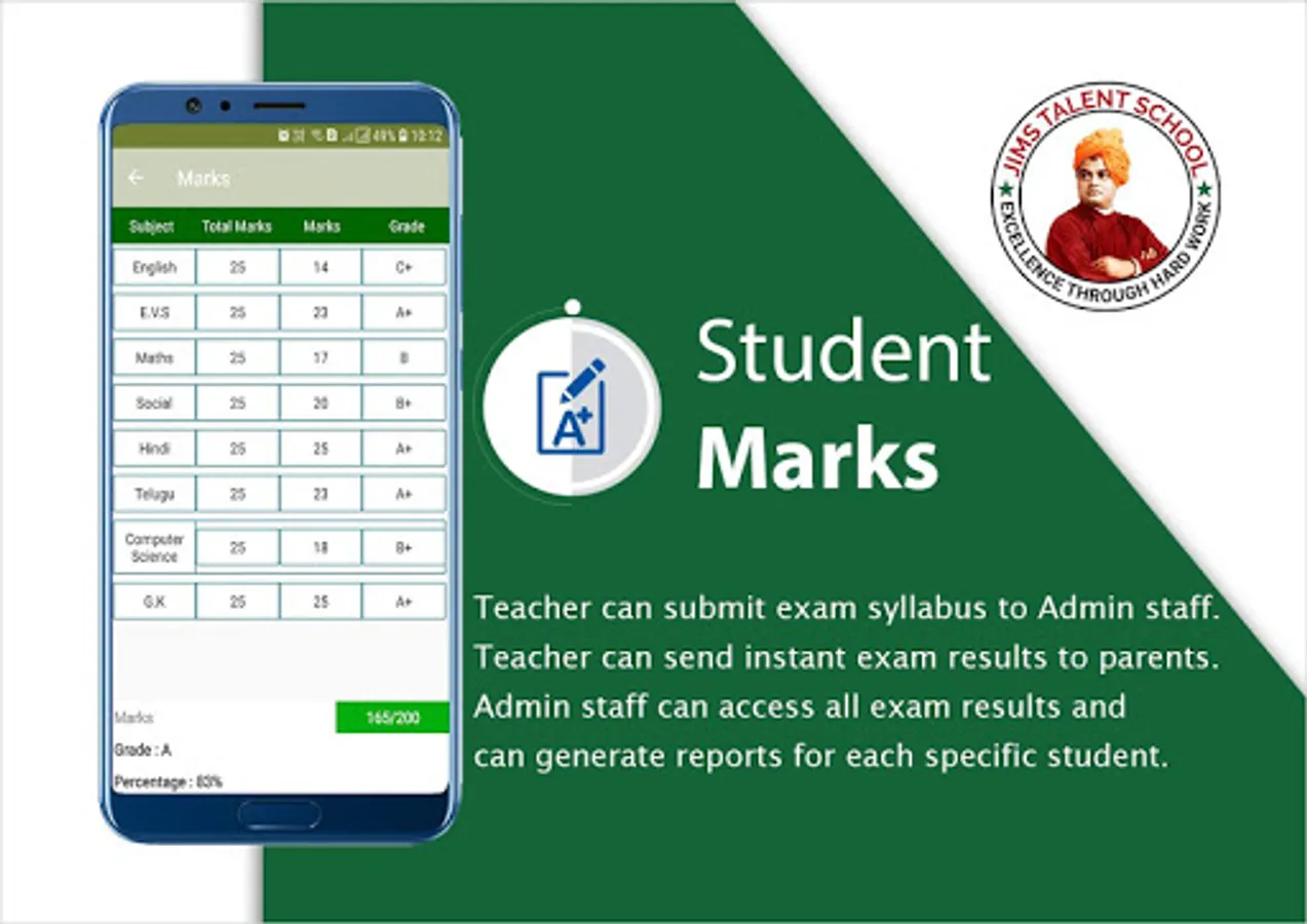 Jims Talent School app provides an instant communication system for staff, teachers and parents. It helps the teachers send any kind of information regarding students to their parents instantly with just a click.