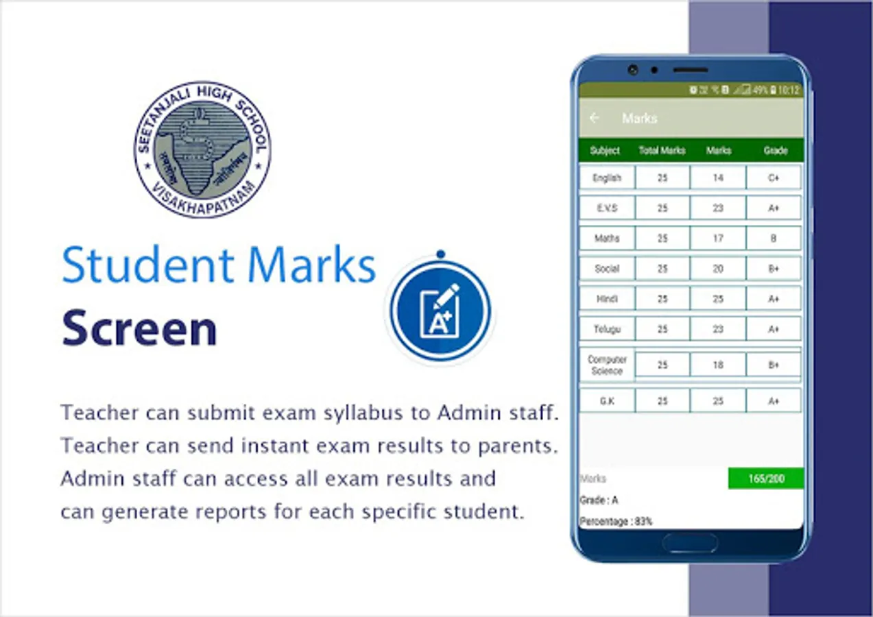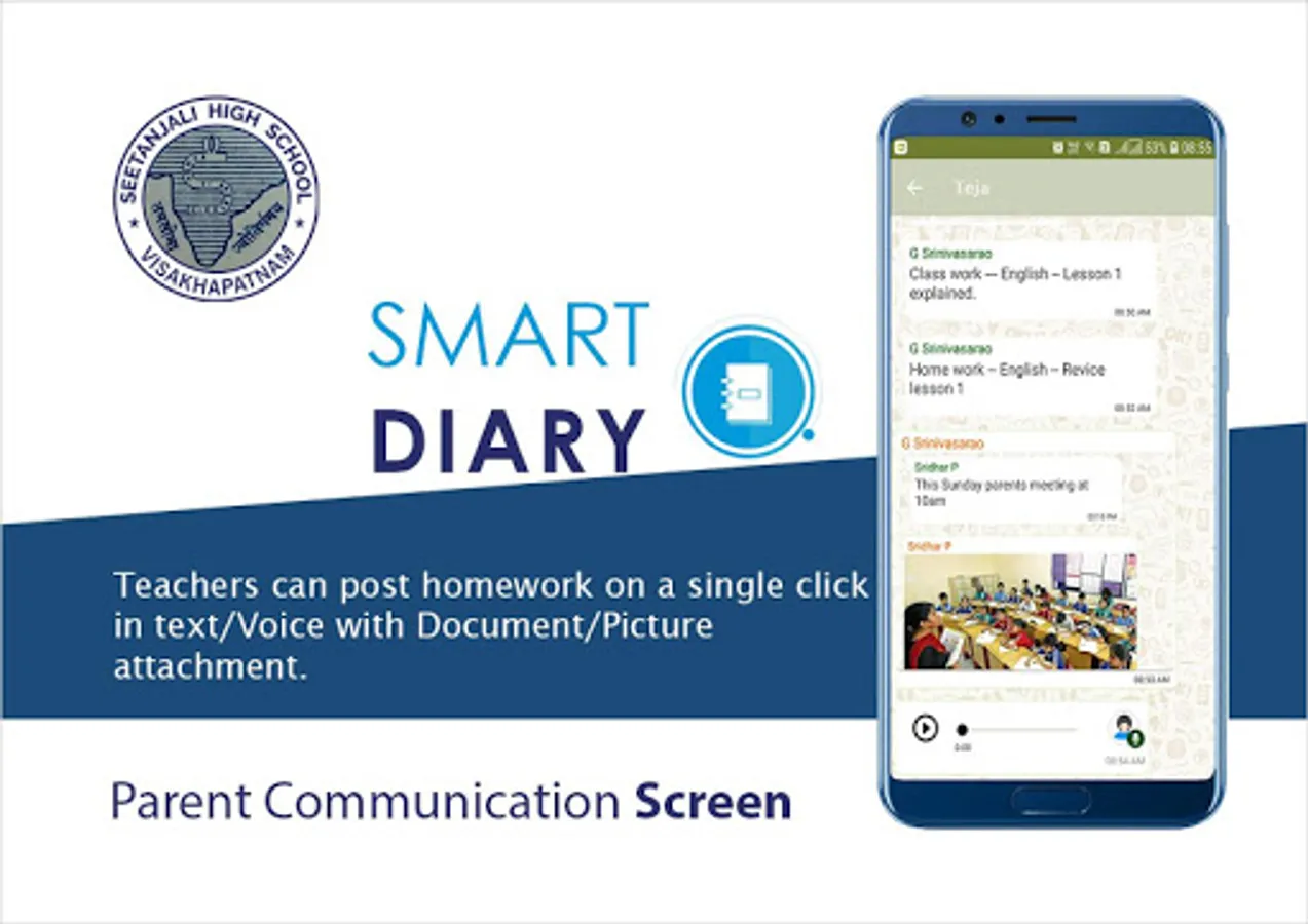 Seetanjali High School app provides an instant communication system for staff, teachers and parents. It helps the teachers send any kind of information regarding students to their parents instantly with just a click.