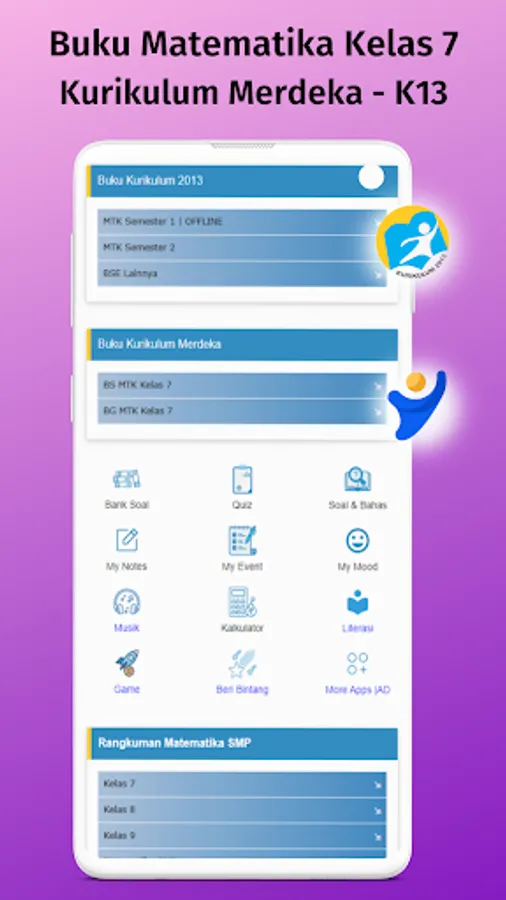This application provides a Class 7 Mathematics Book for the Independent Curriculum and a Class 7 Mathematics Book for the 2013 Curriculum which can be opened without using internet data.