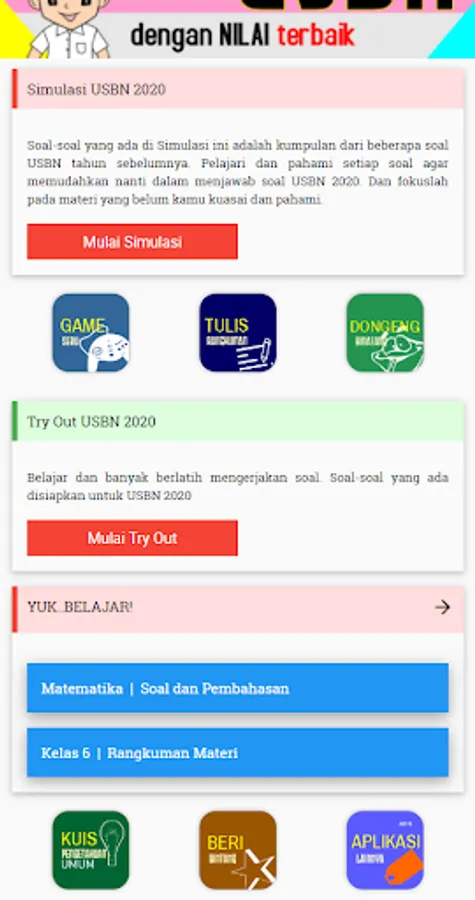 This application is an application that is ready to become your loyal friend in facing the 2023 SD school exams. Do more work on the questions so that you can train yourself to be more in control of school subject matter