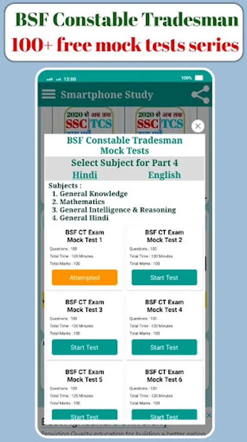 BSF Constable Tradesman Exam 2023 Mock Tests or Practice Sets & Preparation App