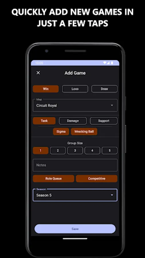 Quickly and easily manually enter the results from your Overwatch matches. This must be done manually because Overwatch does not allow public access to match data.