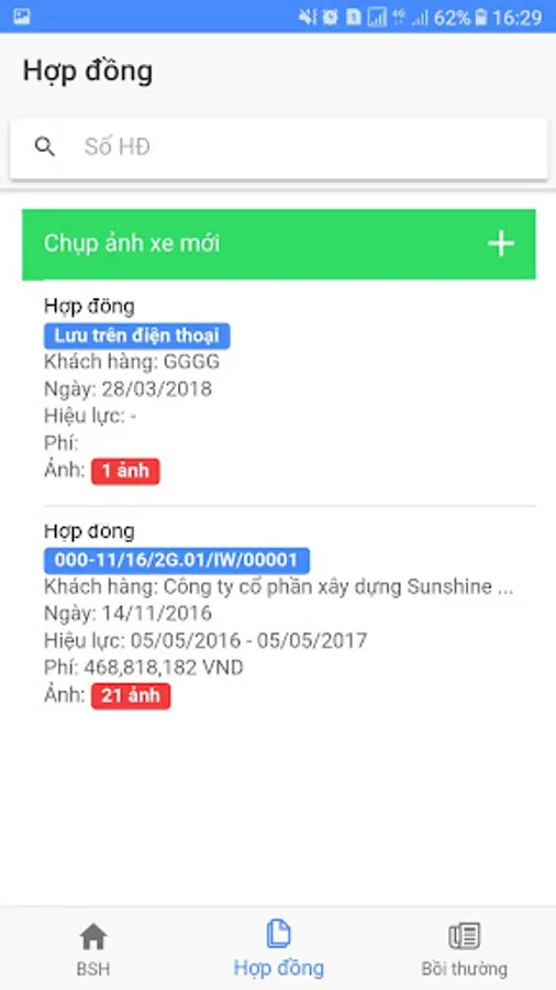 - Take photos on the basis of creating a new profile photo on the phone for the car have not updated in the software business, in order to cater for cases of new operators, loss assessment arises when not promptly import insurance contract & Profile complaints on software.