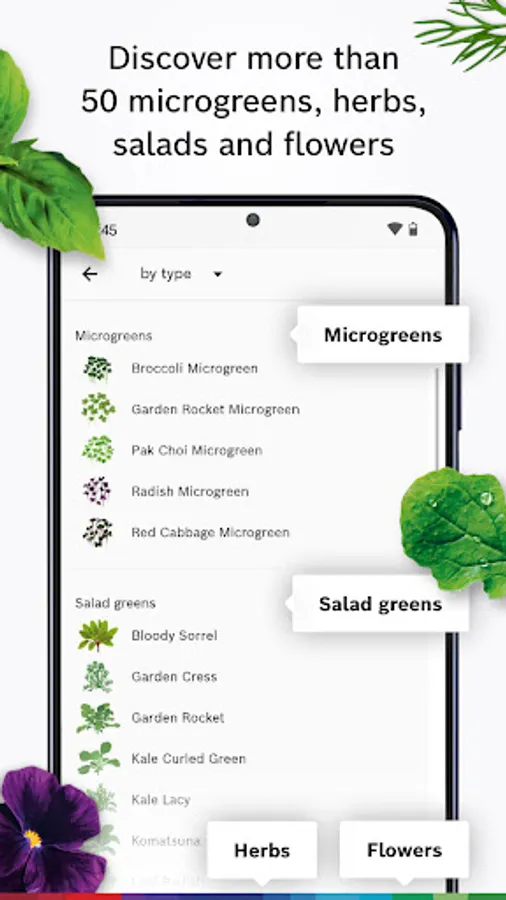– Find out how to make food, tea, and cocktails using more than 40 different plant varieties (e.g. Basil, Leaf Radish, Mizuna, Tatsoi, Garden cress, Pok Choy, Garden Rocket, Kale, Watercress, Sweet Blond lettuce, Chervil, Mustard, Coriander, Summer Savory, Wild Rocket, Sage, Dill, Flatleaf Parsley, Marjoram, Mint, Bloody Sorrel, Oregano, Thyme, and Chili).