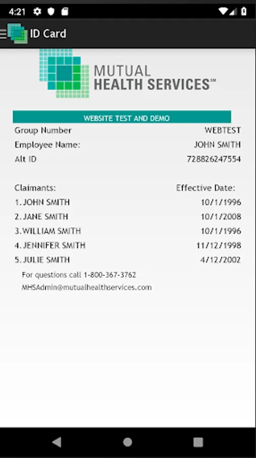 The Mutual Health Services Member application allows MHS Health Insurance members and dependents to access their ID card information, check eligibility status, and lookup claim information for submitted claims.