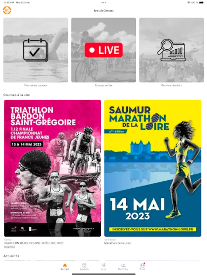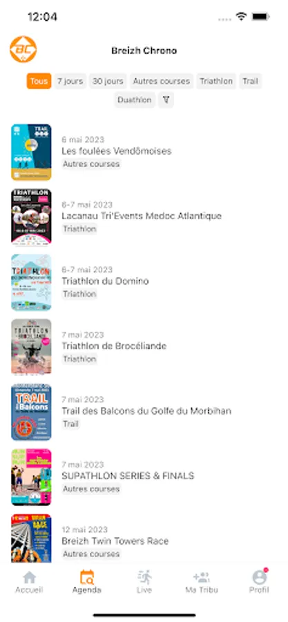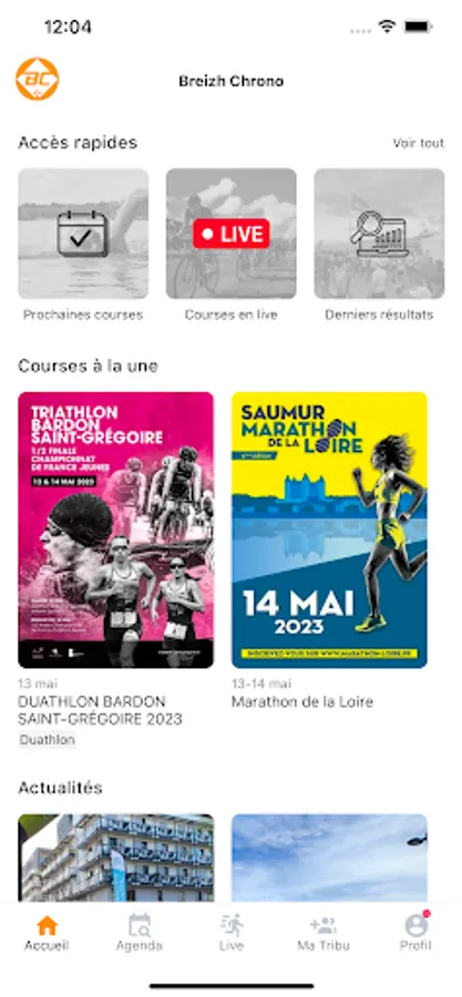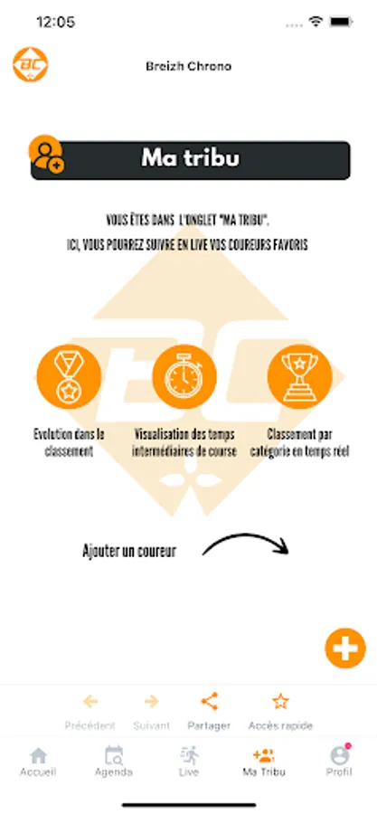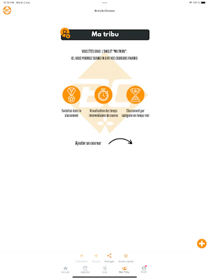Breizh Chrono offers you a mobile application allowing you to consult live the intermediate and final results of the different tests supported. This application also allows the monitoring of a tribe ie a set of runners / participants, potentially multi-events.