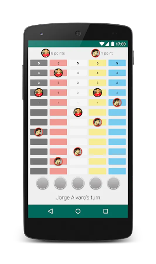 The goal of the game is to get your five pieces as far as possible through the five paths when the game ends. This happens when at least one of the players has reached the end of the five paths.