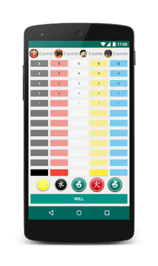 1. Roll the five dice. You may elect to roll a second and third time re-rolling any or all of dice (as in Yahtzee).