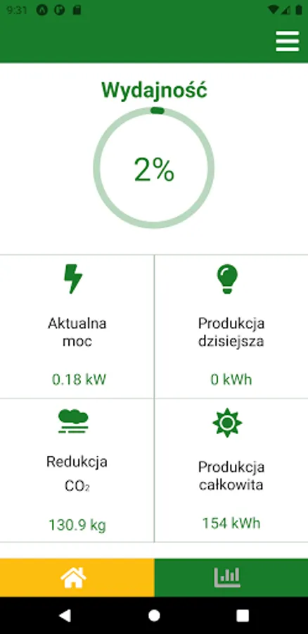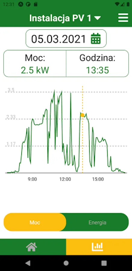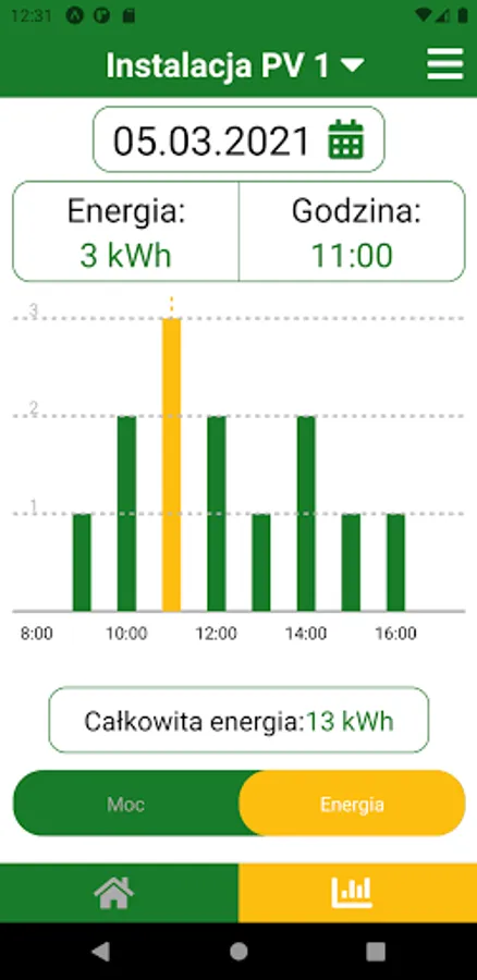 Thanks to the simple and accessible interface, navigating the application is child's play. You can easily navigate from the home screen to more detailed information. PV FLOW in the form of large, readable charts will present you with comprehensive data on the energy produced by your photovoltaic installations - on a daily, weekly, monthly and annual basis.