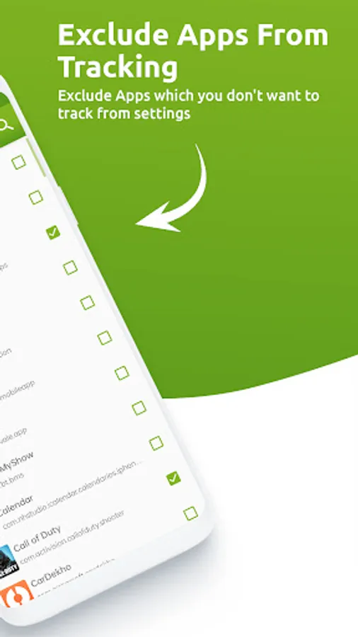 ✔ Track App Usage on a Daily, Monthly, Yearly and Even Hourly Basis Well, Track app usage comes with a clean and neat design, and the interface is so user-friendly and the charts and graphical stats are so easy to follow, that you’ll get the whole idea after running the app for a couple of times. Once you install and open this best mobile apps usage scheduling & tracking app for the first time and grant the required permissions, you’ll see an empty app usage report. But from now on, Social media tracker app starts to track all apps usages in the background and automatically generates some helpful usage reports to stay focused on expensive time and most important work. The in-depth analysis and reports are presented and depicted on some eye-catching and easy-to-understand graphical charts and you’ll easily learn about the usage report by looking at graphical statistics of the usage of your applications. The reports include the total time you spent on your mobile phone (Daily, Monthly or Yearly), the total time you spent on different applications separately, and app usage by hours of the day. You’ll also have access to historical data and you get to easily find out about your usage in a certain period in the past. This feature is very helpful when you want to compare your current app usage with the last period. What Else? Well, App usage data tracker app is completely optimized and battery-friendly and you don’t need to worry about the battery usage as you barely notice any difference after installing this free usage tracker app. There is also the option to exclude certain apps from being tracked to get a more personalized usage report.