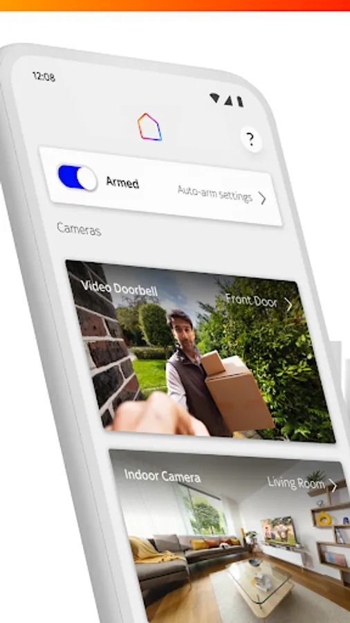 Set the Auto arm feature to automatically turn on your Indoor Camera and sensors when you go out. And off when you get back home.