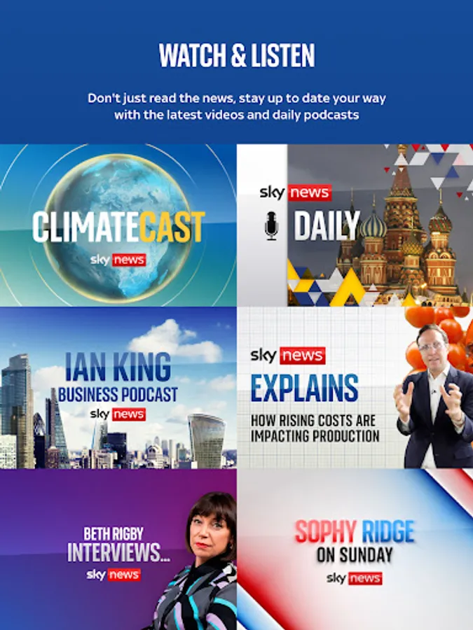 • Podcasts - listen to our radio shows including Daily, All Out Politics, Behind the Headline, Sophy Ridge on Sunday and Backstage