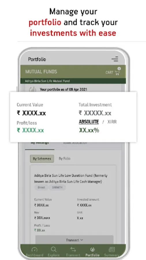 The app aims to offer a world-class experience for the investors of ABSLMF anytime/anywhere. You can start new SIP, make lumpsum mutual fund investments, redeem or switch existing investments, invest in new fund offerings (NFOs), get account statements, view your portfolio holdings or even get information about ABSLMF’s any existing or new Mutual Fund scheme offerings that you may wish to invest in.
