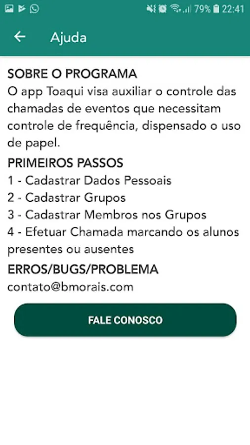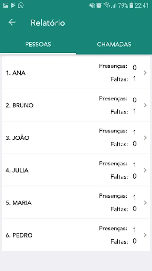 Application aimed at controlling the frequency of people / students, in a simple and intuitive way, in addition to the availability of a PDF report of all calls made. Through it it will be possible to manage the frequency of people whether in a classroom, church or physical activity and all without the need for internet