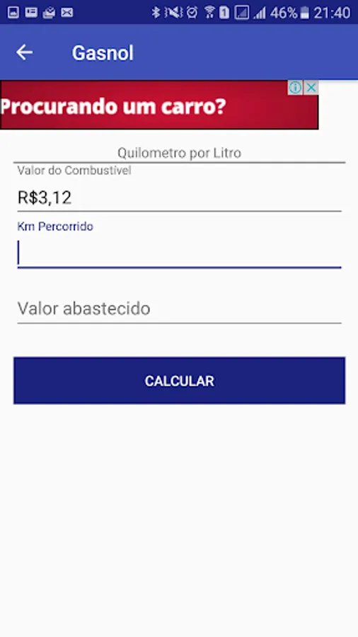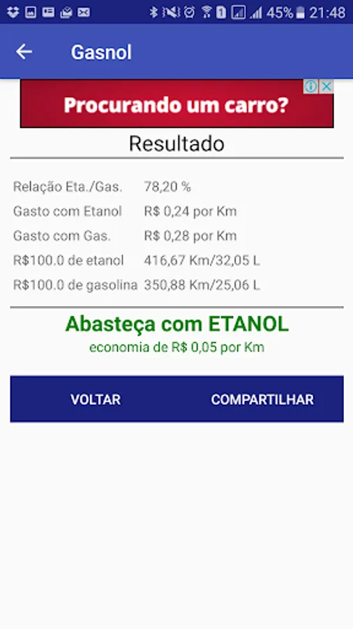 Gasnol was developed with the objective to streamline and show what the best fuel between ethanol and gasoline. Using a method other than traditional (ethanol / gasoline), the calculation is made from the yield of each vehicle and is still possible to obtain an estimate of monthly cost and how much will be the yield per supply. If you do not know what the consumption of your vehicle on ethanol or gasoline, and can also discover through Gasnol