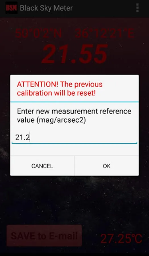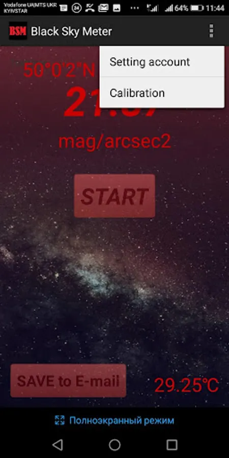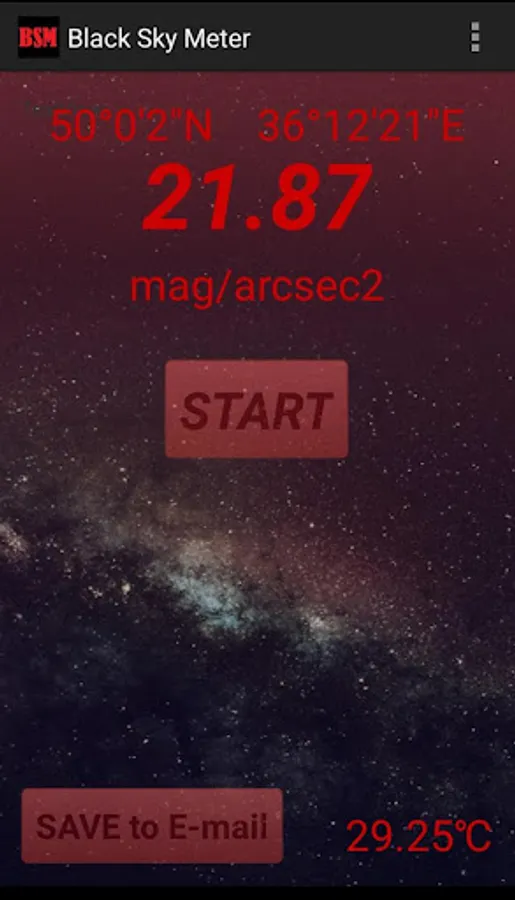 Black Sky Meter measures the brightness of the night sky in magnitude per square angular second (Mag / arcsec2).