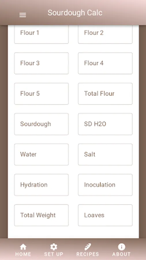 SD Calc by BSMapps is a useful sourdough bread calculator and recipe notepad. It will help you calculate the analogies of basic ingredients and you can see the effects in hydration, inoculation, salt, total dough weight and suggests no of loaves.