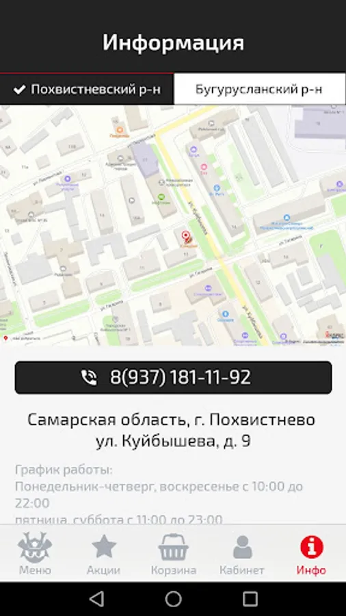 Japanese Cuisine "Samurai" is the best cafe with Japanese cuisine in the city of Pokhvistnevo (Samara region) and the city of Buguruslan (Orenburg region). The largest menu, quality products, qualified staff - this is our recipe for quality dishes. We also have the biggest pizzas and the juiciest burgers. Don't take my word for it, see for yourself. We give a discount on the first order -10%.