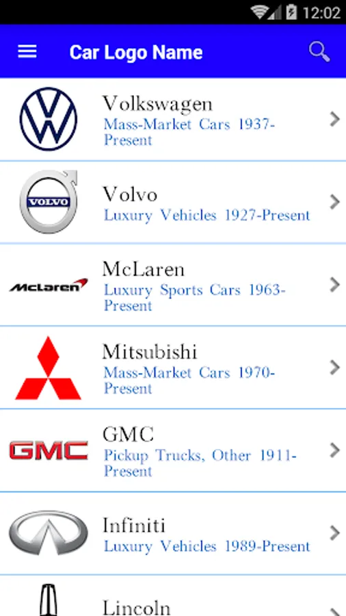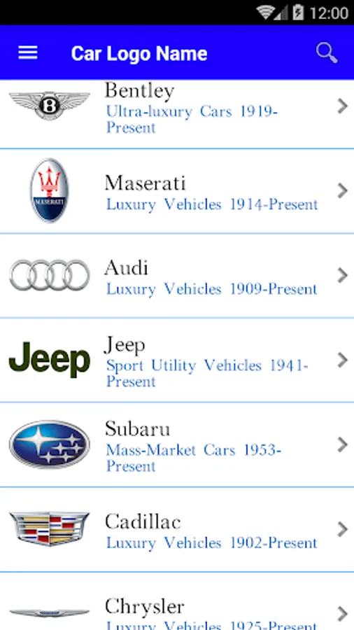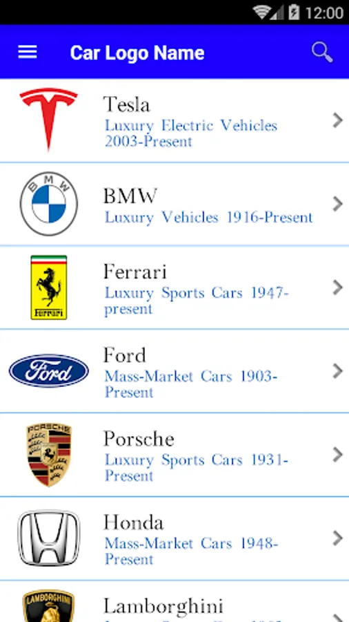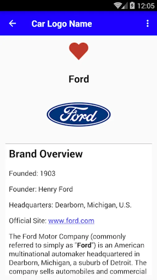 By Car Logo Name app you can learn about brand overview:Founded, Founder, Headquarters, Official Site ...