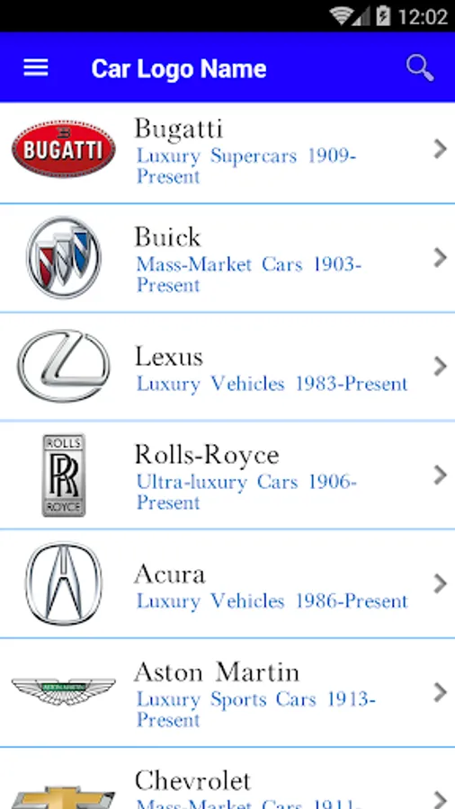 This is a app is good to learn and relax a bout car logo name with more three hundreds of brands from all popular companies of car.