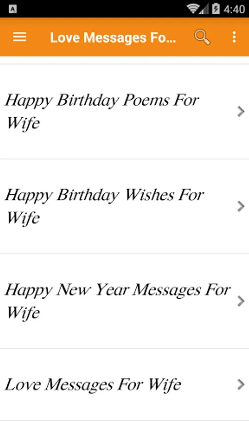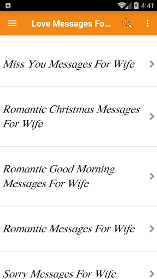 "Love Messages For Wife" Applicaion contains a collection of romantic love messages to serenade your wife (or your wife-to-be!) and make her feel special!