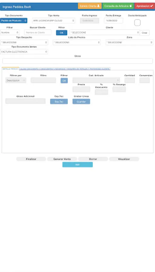 This application allows you to create orders online with the Bsoft Erp system.